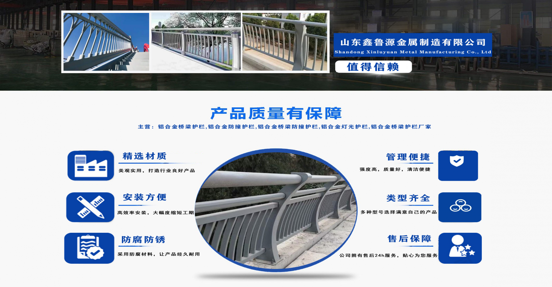 山東鑫魯源金屬制造有限公司主要經(jīng)營:鋁合金橋梁護(hù)欄,鋁合金防撞護(hù)欄,鋁合金橋梁防撞護(hù)欄,鋁合金燈光護(hù)欄,不鋁合金橋梁護(hù)欄廠家,環(huán)波梁橋梁護(hù)欄,環(huán)波梁防撞護(hù)欄。質(zhì)量可靠、經(jīng)濟(jì)實(shí)用的顯著特點(diǎn)。公司為客戶提供可靠售后保障,堅(jiān)持“以品質(zhì)立足、服務(wù)求發(fā)展”,愿與各界朋友精誠合作、攜手發(fā)展! 服務(wù)優(yōu)勢:真誠的服務(wù)理念、完善的服務(wù)體系。公司專業(yè)力量充足;工程案例眾多、從業(yè)經(jīng)驗(yàn)豐富;公司以可靠質(zhì)量的產(chǎn)品,合理的價(jià)格,完善的售后服務(wù),能夠滿足市場各個(gè)企業(yè)的需求。 企業(yè)精神:執(zhí)著追求 持續(xù)創(chuàng)新執(zhí)著追求,就是堅(jiān)持不懈、堅(jiān)定從容,專注于自己的事業(yè),把能做的事情做好,不斷克服困難、把握機(jī)遇,贏得未來。 持續(xù)創(chuàng)新,就是生命不息、創(chuàng)新不止,通過持續(xù)實(shí)施技術(shù)創(chuàng)新、管理創(chuàng)新、市場創(chuàng)新,獲取持續(xù)的競爭優(yōu)勢。...